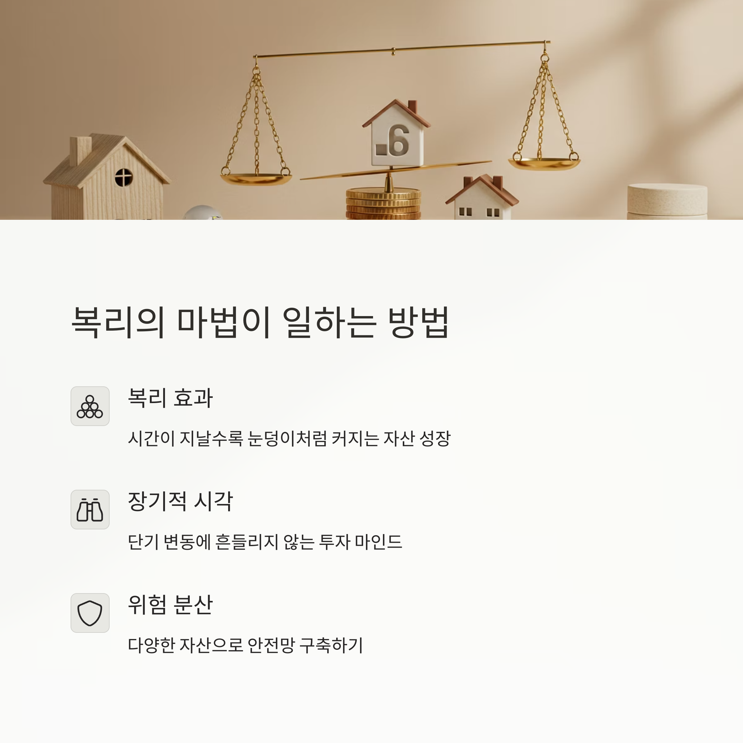 | 복리 효과 | 작은 금액도 꾸준히 투자하면 시간이 지날수록 큰 자산으로 성장 |