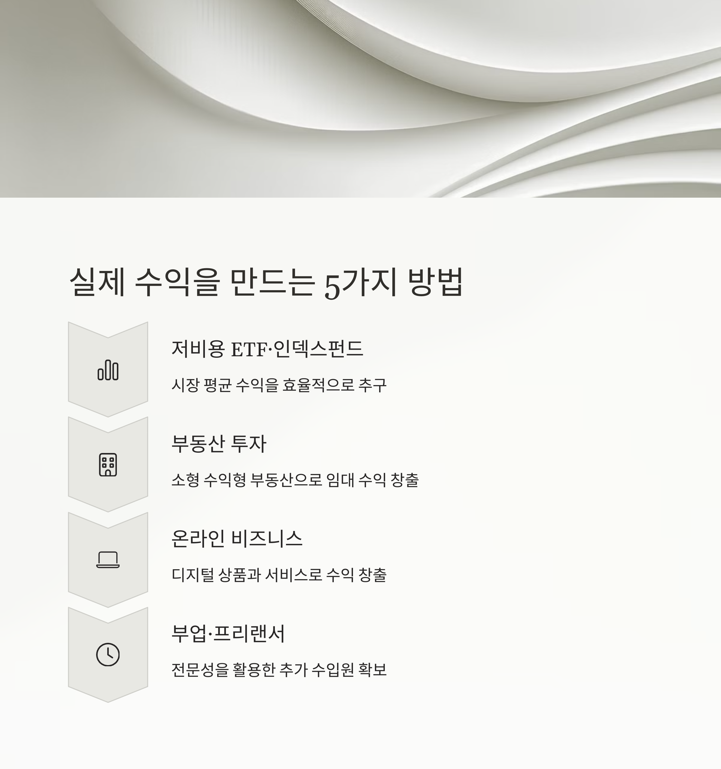 5️⃣ 자동화된 수입원 만들기: 장기적으로는 직접적인 시간 투자 없이도 돈이 들어오는 시스템을 구축하는 것이 목표예요.
