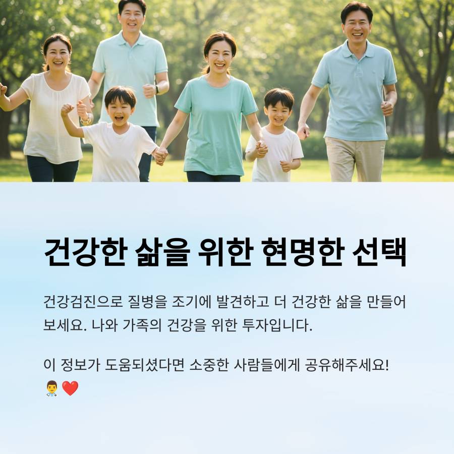 건강검진은 미루지 말고 정기적으로 받는 것이 중요해요. 지금 바로 예약해보세요! 여러분의 건강한 삶을 응원합니다. 💪