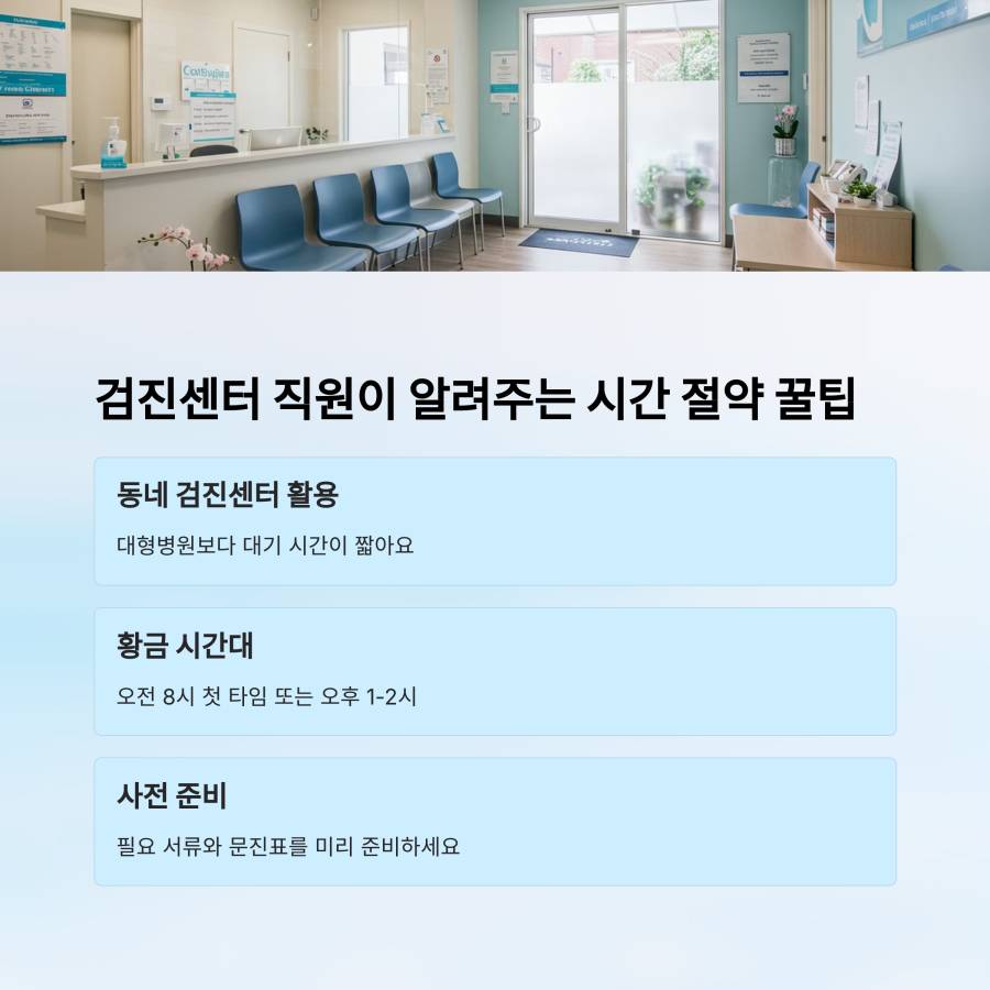 실제 검진센터 직원들이 알려준 꿀팁을 공유해드릴게요! 대형병원보다는 동네 검진센터가 대기 시간이 적은 경우가 많답니다.