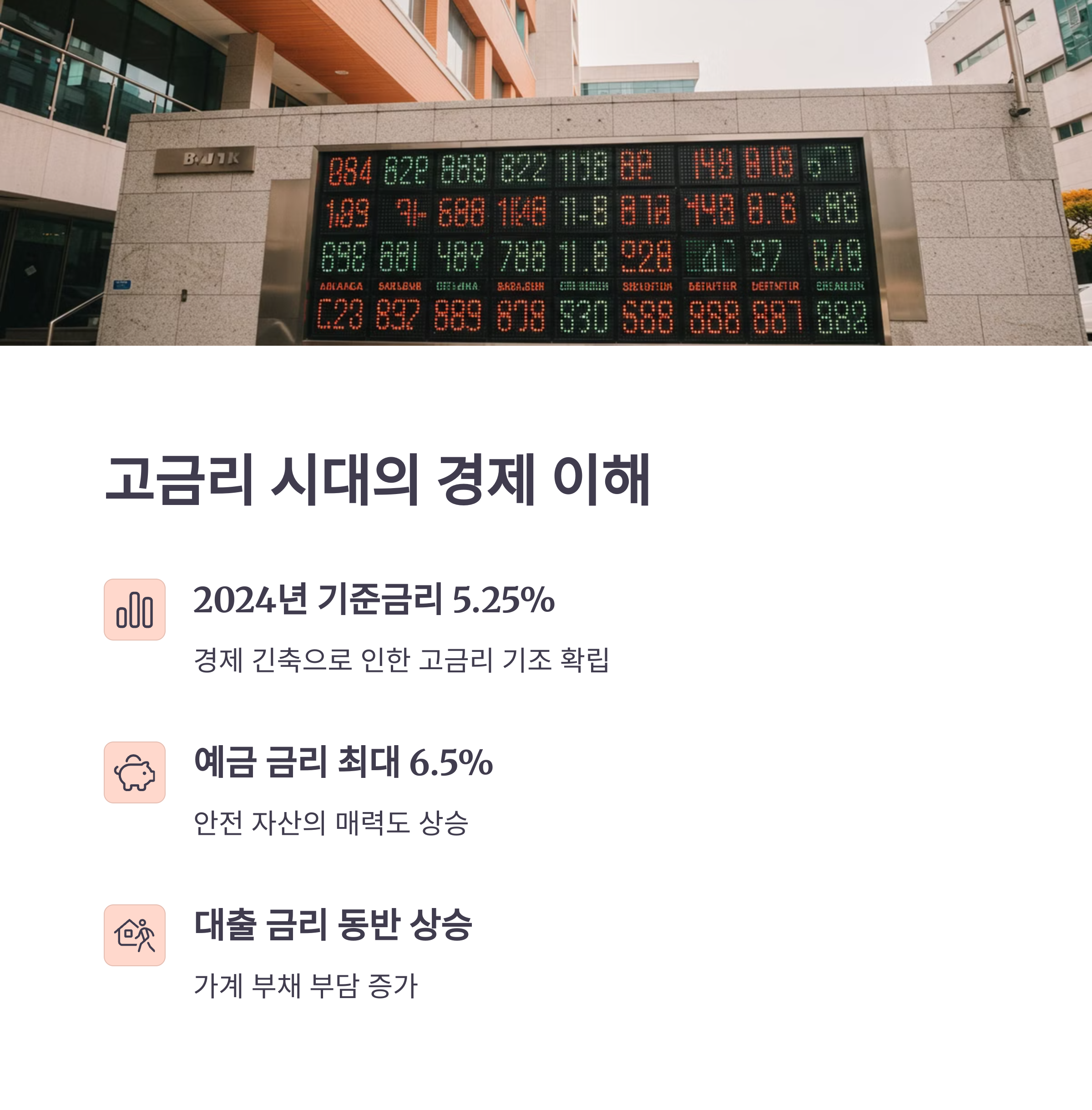 높은 금리는 우리 일상과 경제 전반에 다양한 영향을 미치게 됩니다. 예금 이자가 높아지는 반면, 대출 이자 부담도 커지죠. 😅