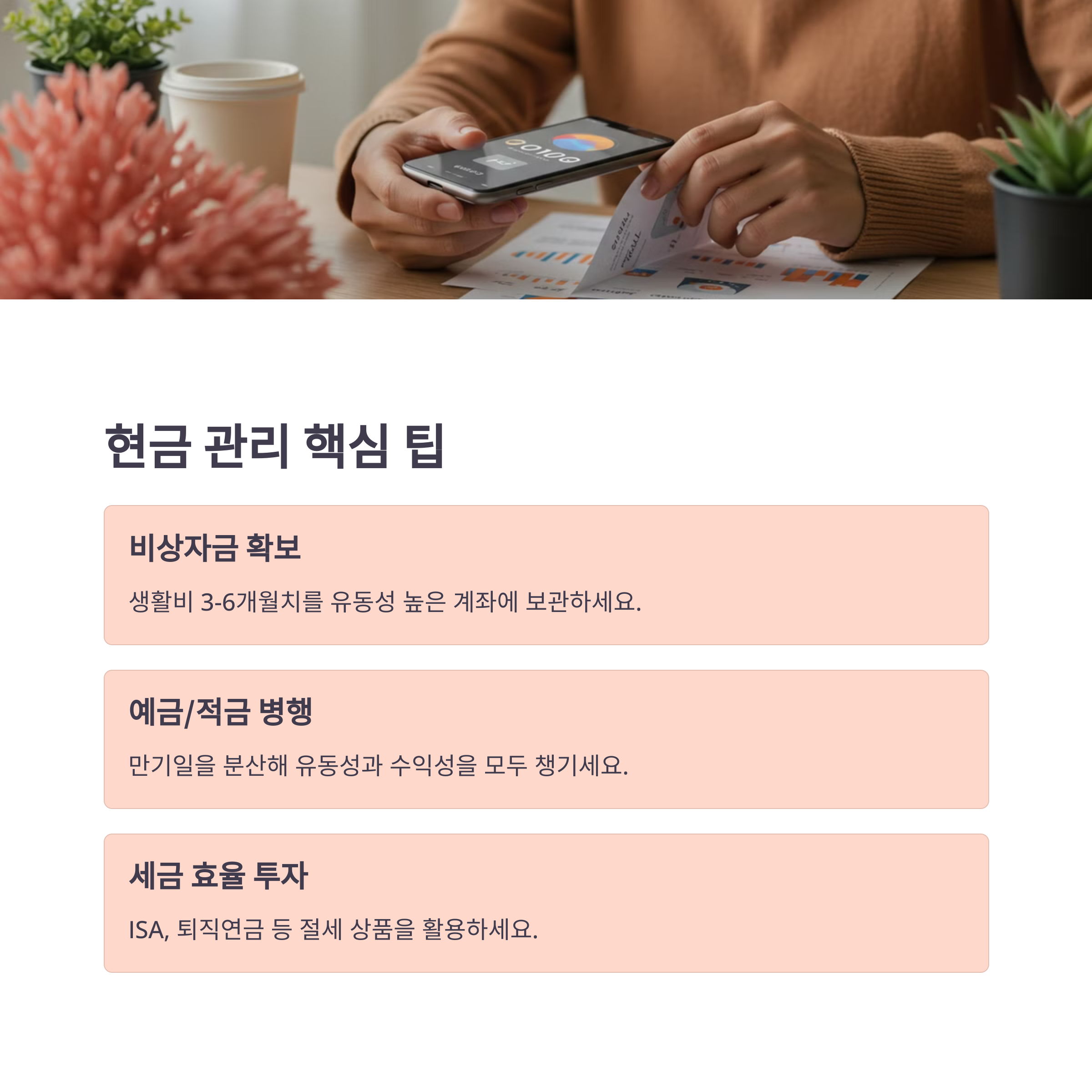또한 긴급 자금을 항상 준비해두는 것이 중요해요. 보통 생활비의 3~6개월 치를 현금성 자산으로 보유하는 것이 좋다고 해요.