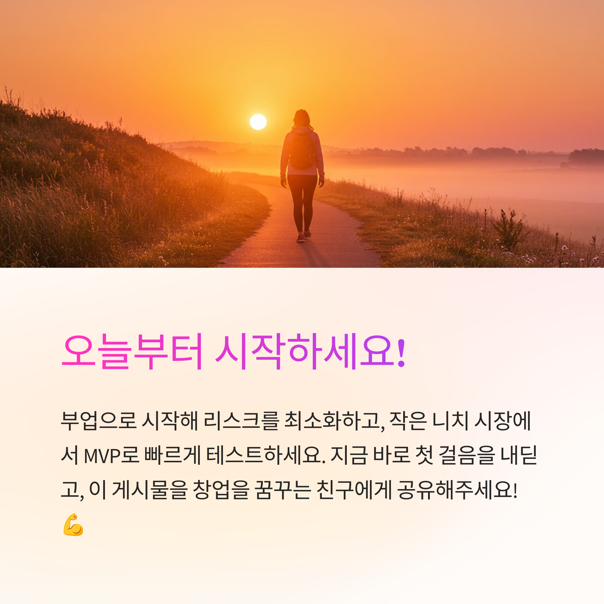 MVP(최소 기능 제품)로 시작하세요. 완벽한 제품이나 서비스를 기다리지 말고, 핵심 기능만 갖춘 상태에서 빠르게 시장에 내놓고 피드백을 받으세요. 🚀