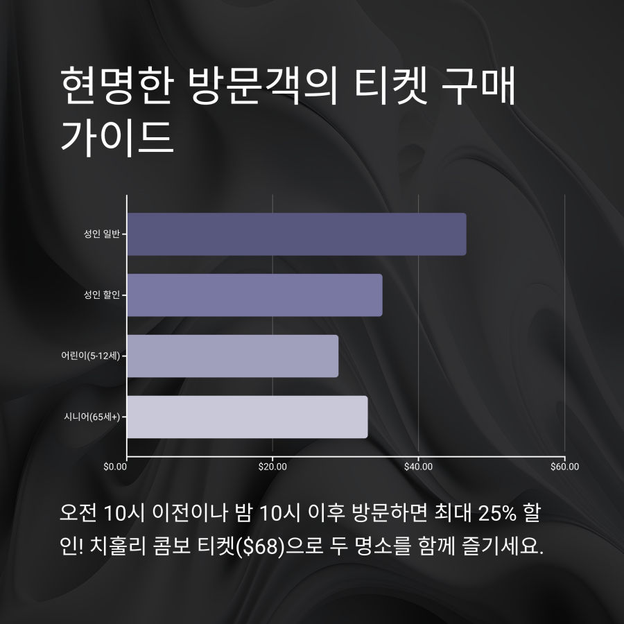 | 일몰/야간 특별권 | $40~50 | 인기 시간대 |