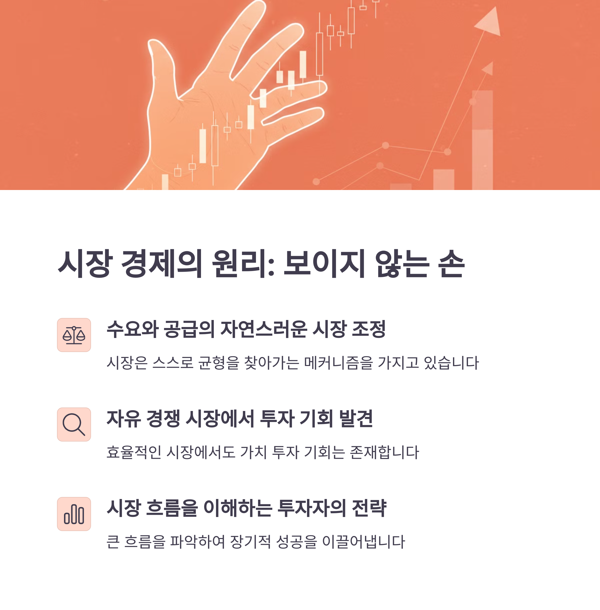 이 원리는 오늘날 투자 시장에서도 여전히 유효해요! 시장은 수요와 공급에 따라 자연스럽게 조정되며, 이것이 바로 스미스가 말한 '보이지 않는 손'이에요.