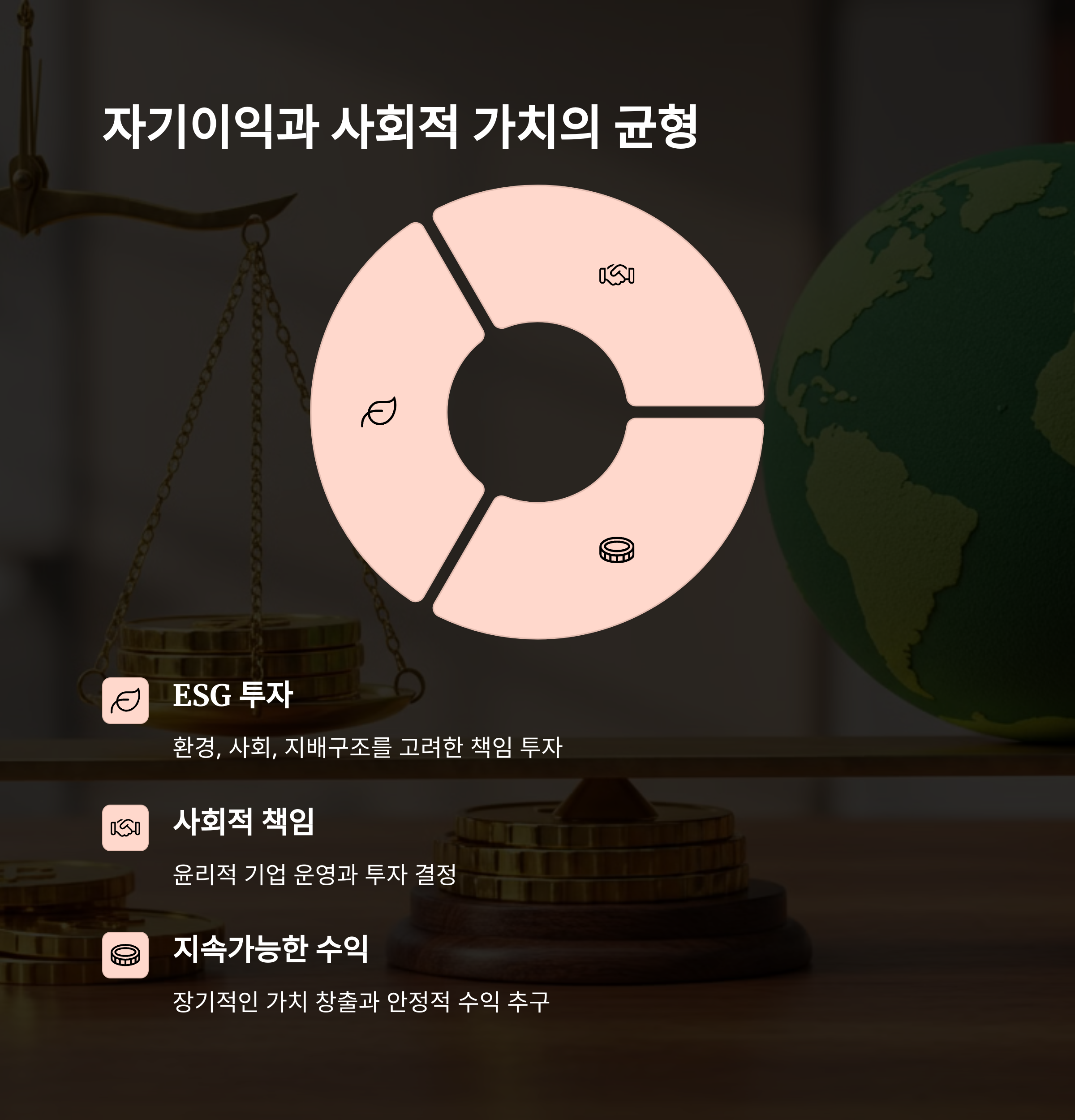자신의 이익만 추구하는 기업보다는 사회적 가치와 개인 이익의 균형을 찾는 기업에 투자하는 것이 장기적으로 더 안정적인 수익을 가져올 수 있어요.