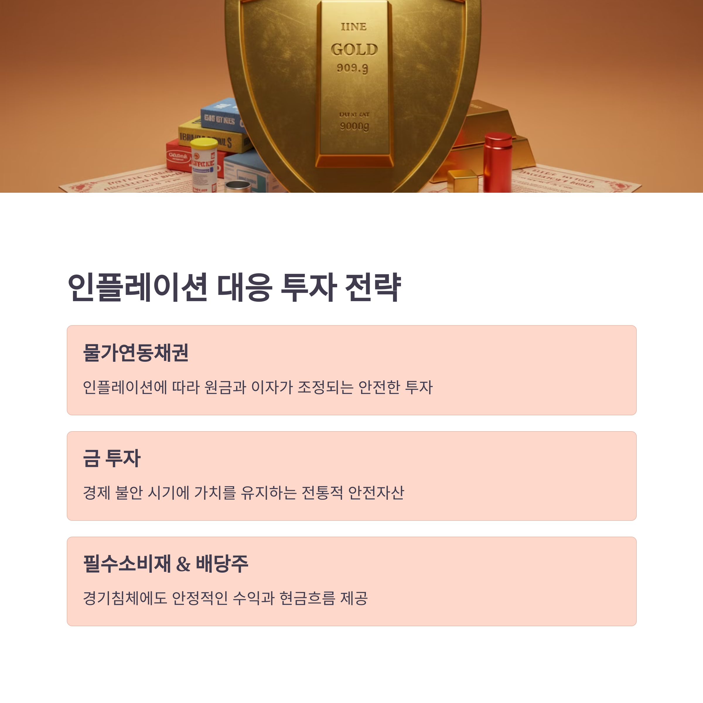 대표적인 인플레이션 헤지 자산으로는 실물자산이 있어요. 금, 부동산, 원자재 등은 인플레이션 시기에 상대적으로 가치를 유지하는 경향이 있답니다.