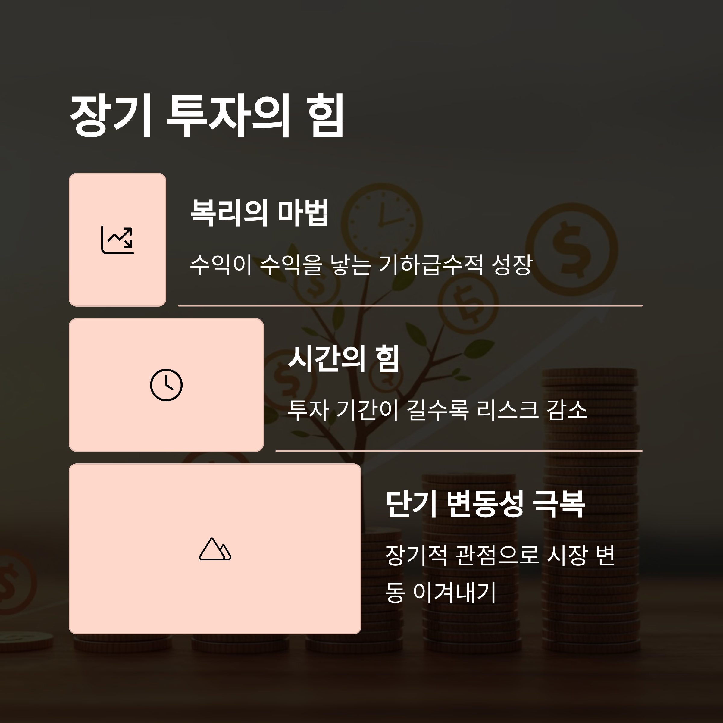 불안정한 시장에서 가장 강력한 무기는 바로 시간이에요. 시장의 단기적인 변동성에 일희일비하지 않고 장기적 관점으로 투자하는 것이 중요해요. ⌛