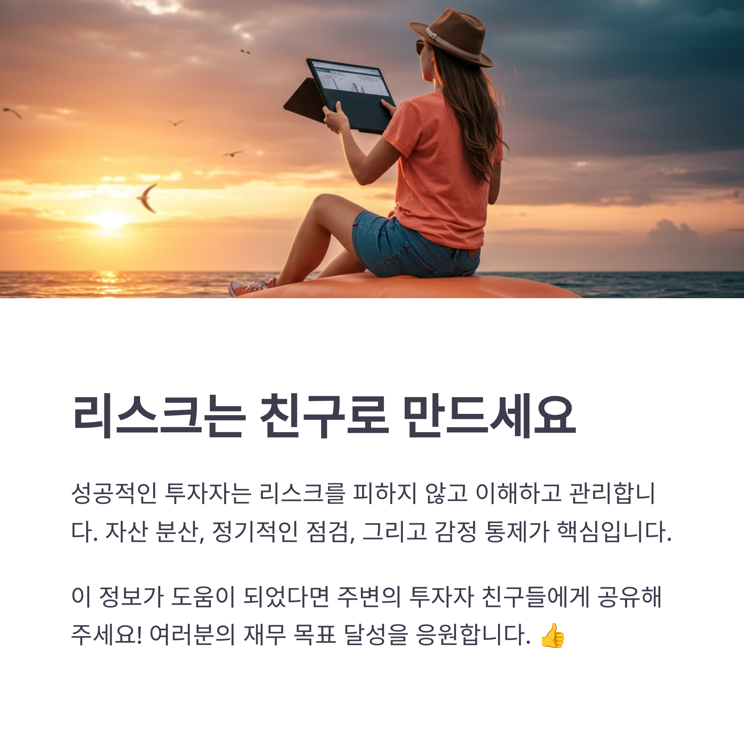 결국 성공적인 투자자란 리스크를 피하는 사람이 아니라, 리스크를 이해하고 관리하는 사람이라는 것을 기억하세요! 💪