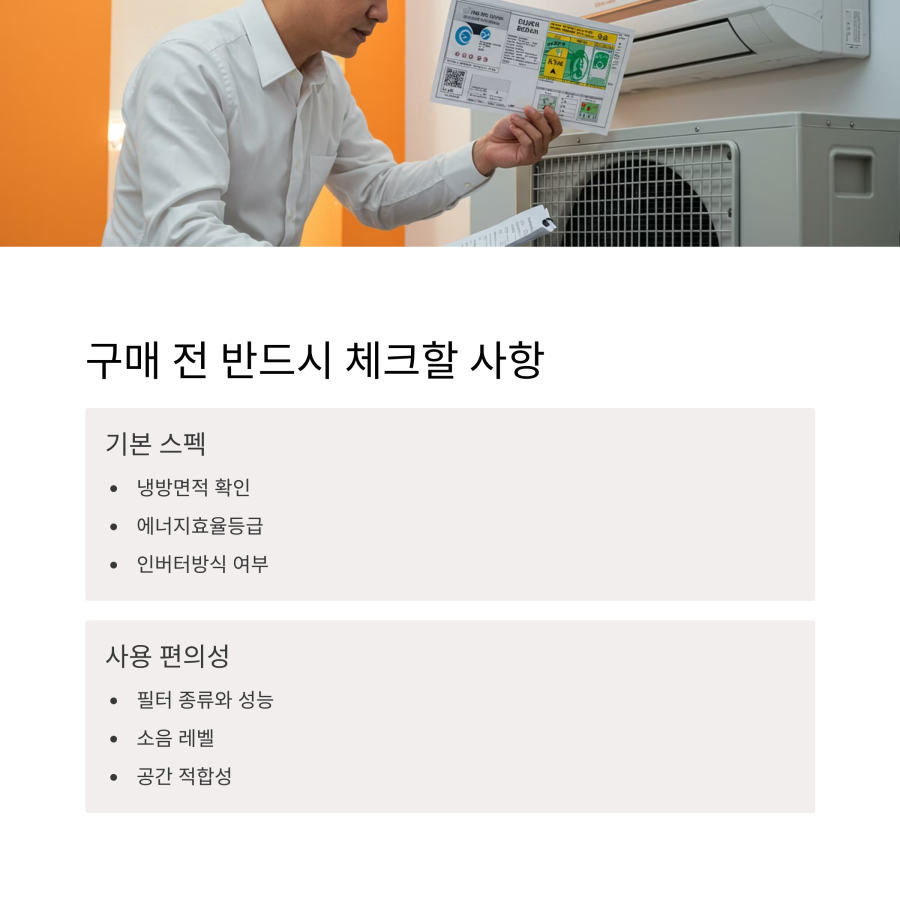 에어컨을 구매할 때는 몇 가지 중요한 체크포인트가 있어요. 이를 고려하면 더 만족스러운 선택을 할 수 있습니다.