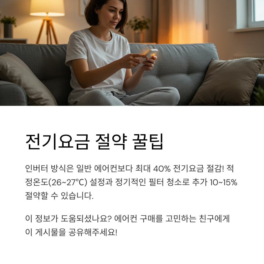 또한 적정 온도 설정(26~27℃)과 정기적인 필터 청소만으로도 전기 요금을 10~15% 절약할 수 있어요!