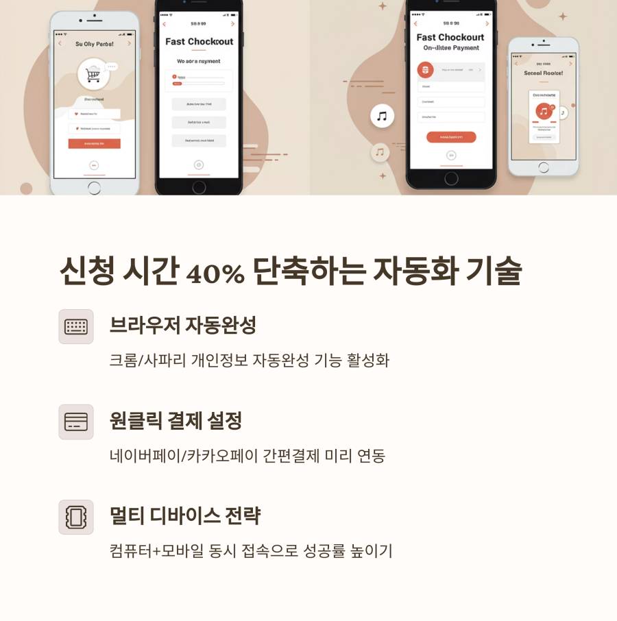 브라우저의 자동 완성 기능을 켜두거나, 미리 회원가입을 완료하고 결제 정보를 저장해두면 신청 시간을 크게 단축할 수 있어요.