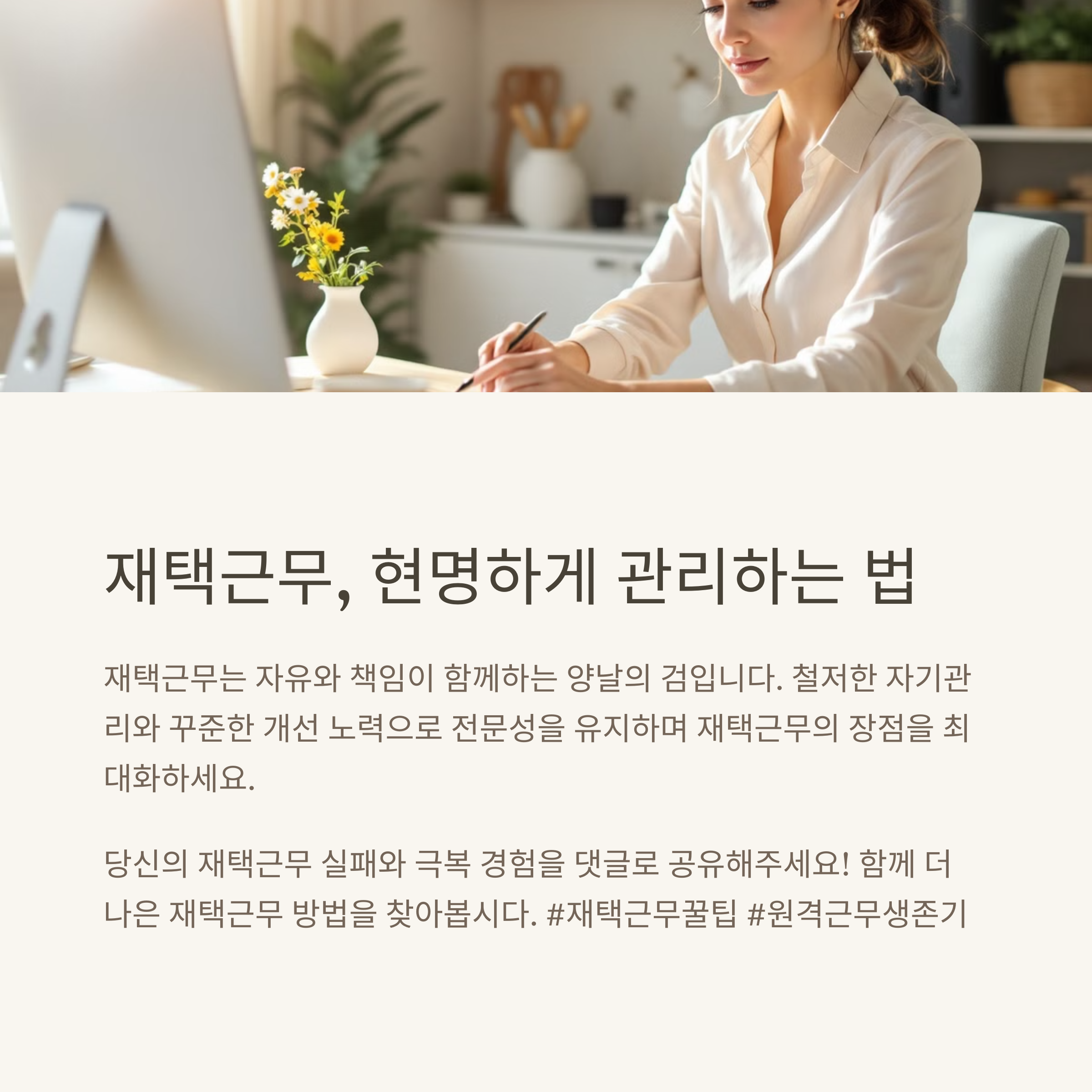 처음 회사에서 재택근무 정책을 발표했을 때, 저는 정말 신이 났어요! 아침마다 버스와 지하철을 갈아타며 1시간 넘게 출근하던 시간을 절약할 수 있다니... 얼마나 행복한 일인가요?