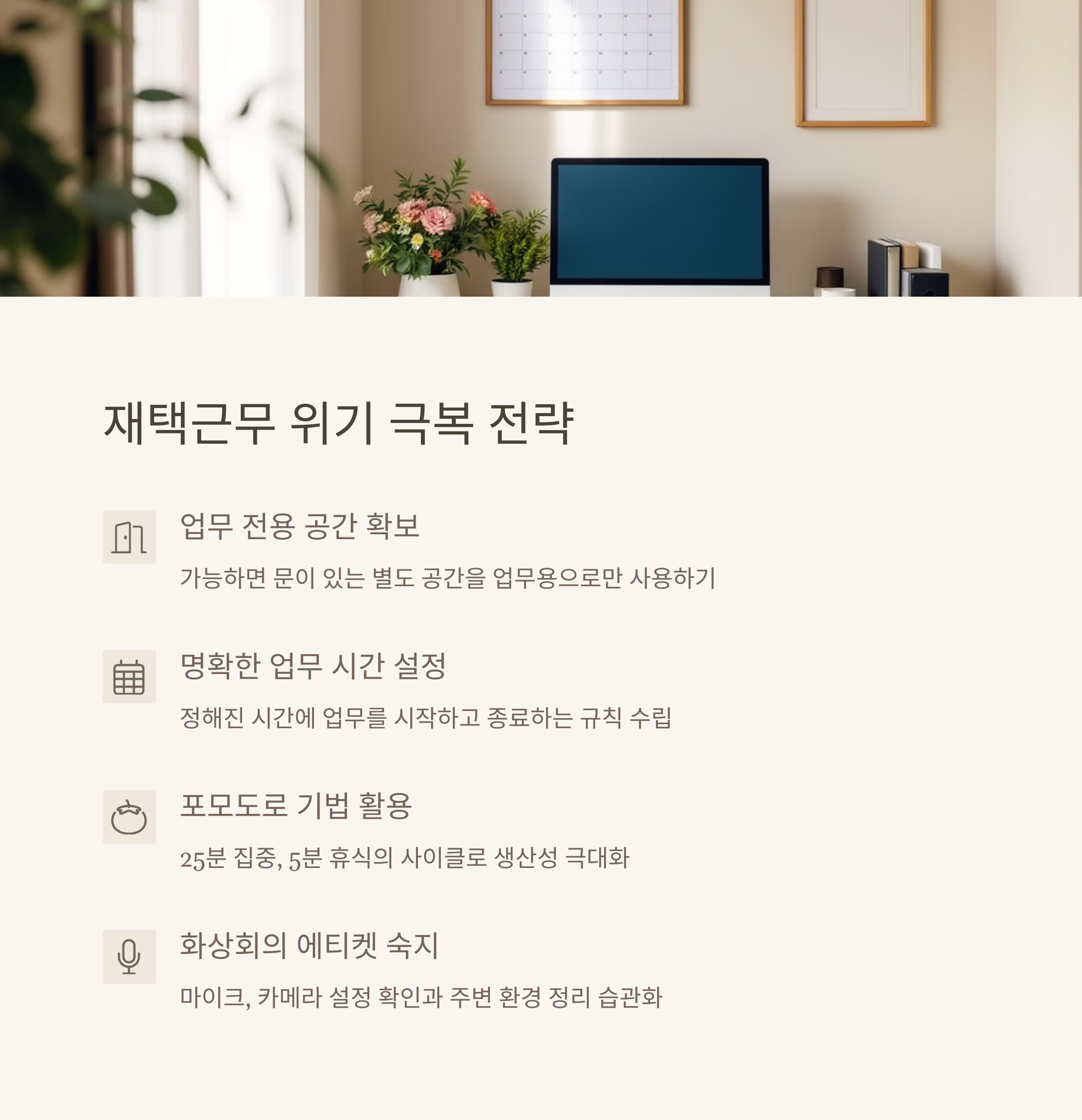 재택근무를 시작하고 나서 가장 크게 느낀 변화는 업무 효율성이 눈에 띄게 떨어졌다는 점이에요.