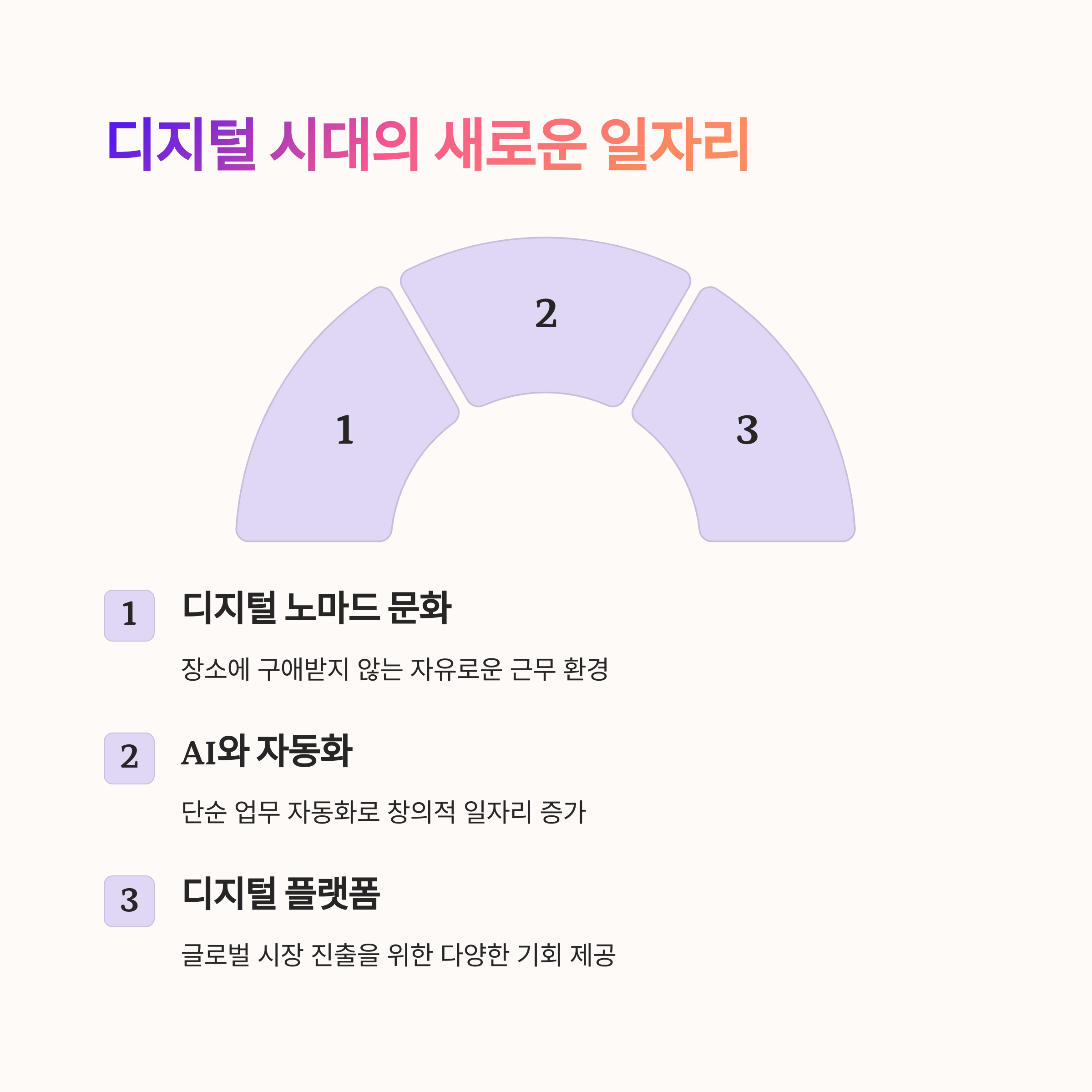 AI와 자동화의 발전으로 단순 업무는 줄어들고, 창의적이고 전문적인 영역에서의 가치가 더욱 중요해질 거예요.
