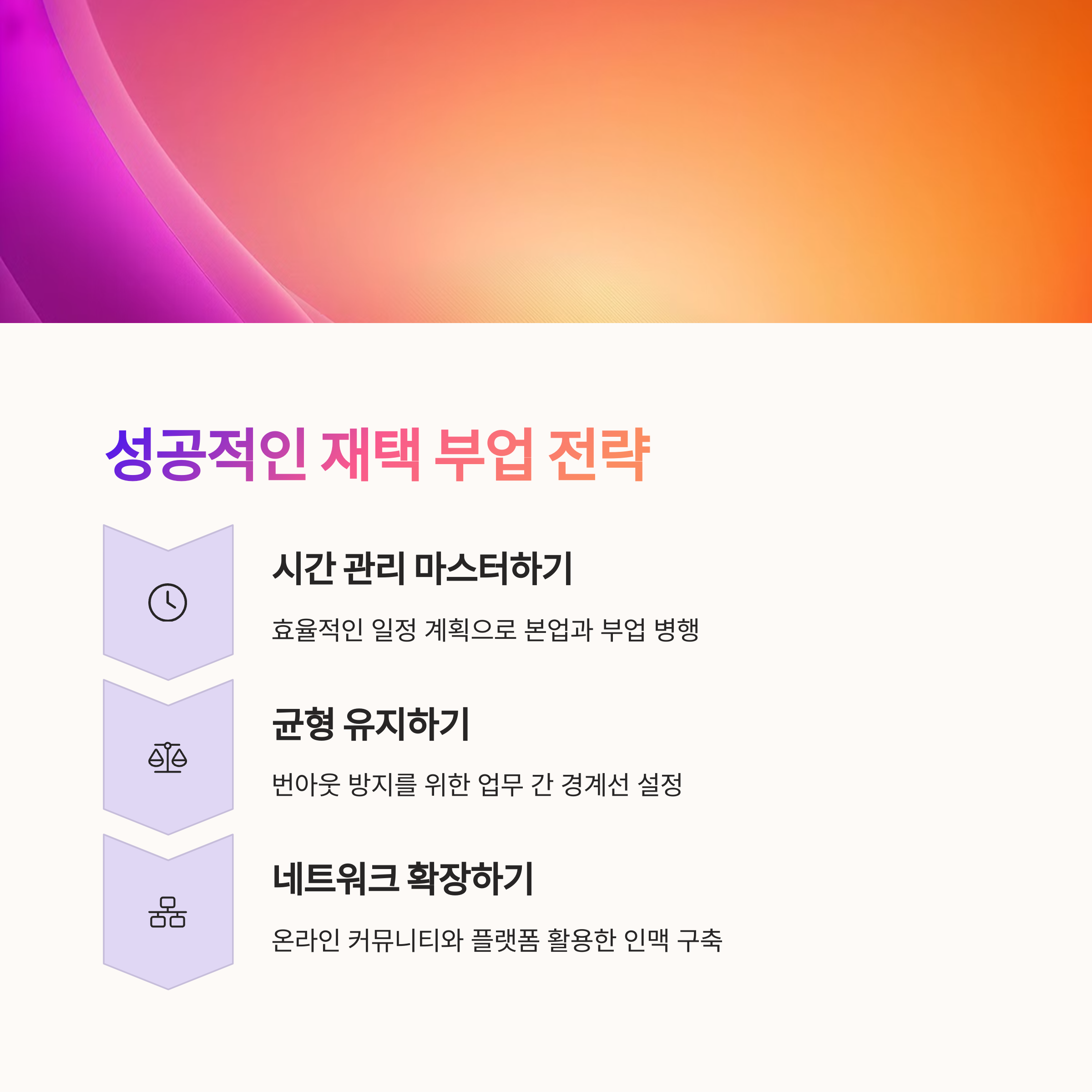 시간 관리가 핵심이에요. 본업과 부업 사이의 균형을 잘 맞추는 것이 중요합니다. 저는 업무 시간을 블록으로 나누어 집중력을 높이는 방식을 활용했어요.