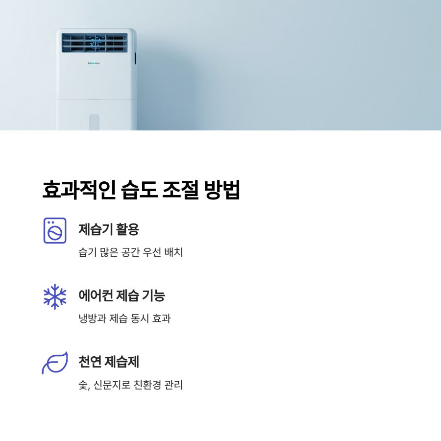 | 습도계 활용 | 환기 시간 선택 | 제습기 위치 |