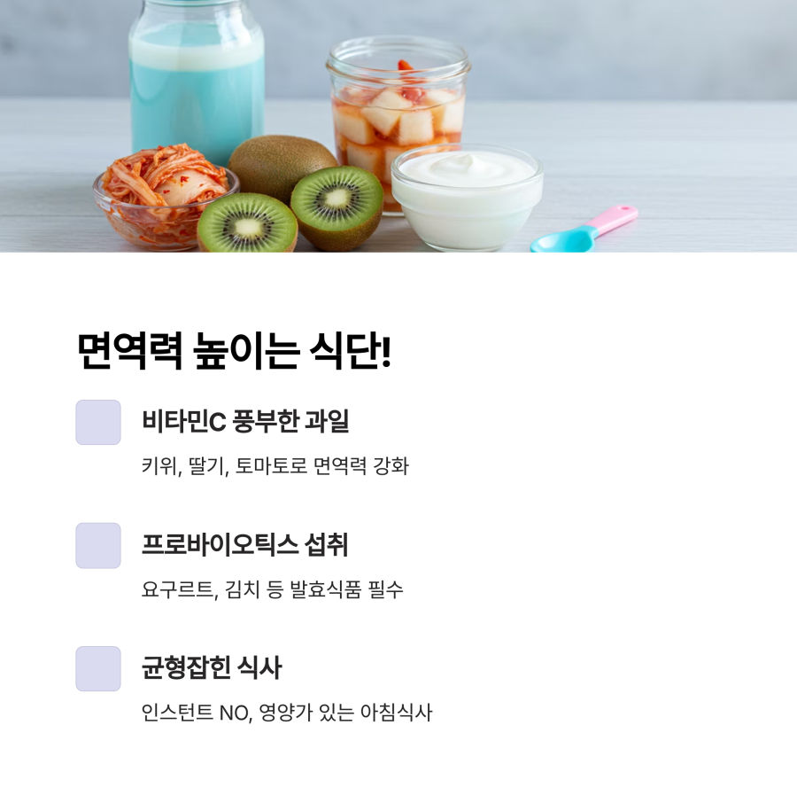 작은 습관들이 모여 튼튼한 면역력을 만들어 갑니다.