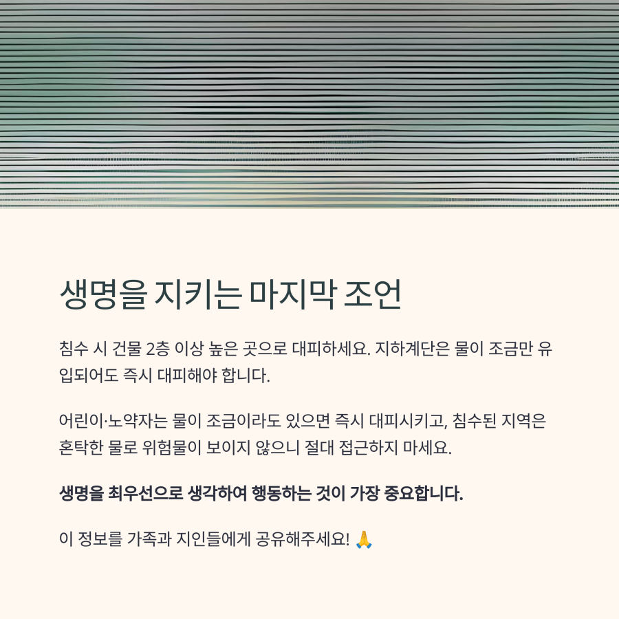 오늘은 여러분의 안전을 위해 장마철 침수 시 꼭 알아두어야 할 대피 요령들을 친근하게 설명드릴게요.