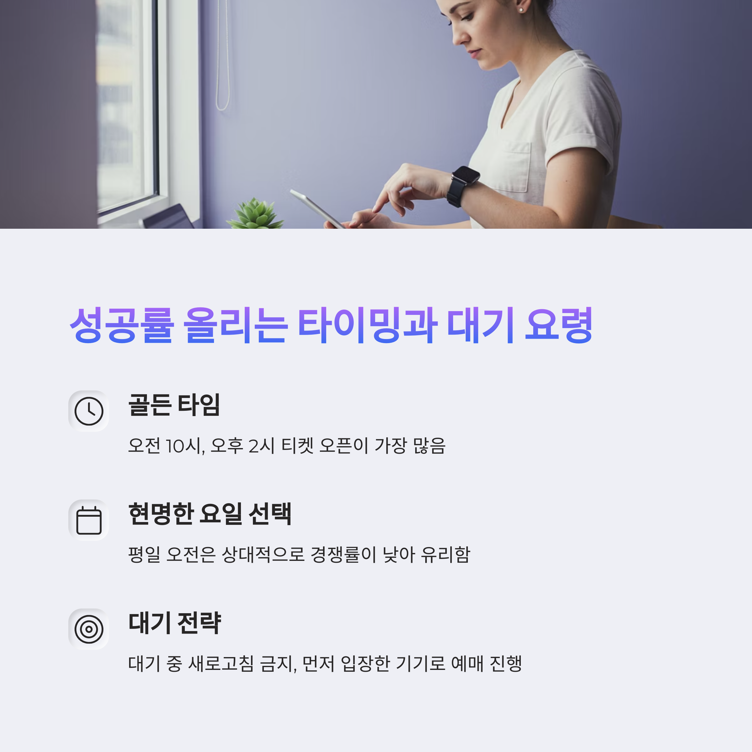 전시회 티켓팅 성공의 핵심은 바로 타이밍이에요! 🕒