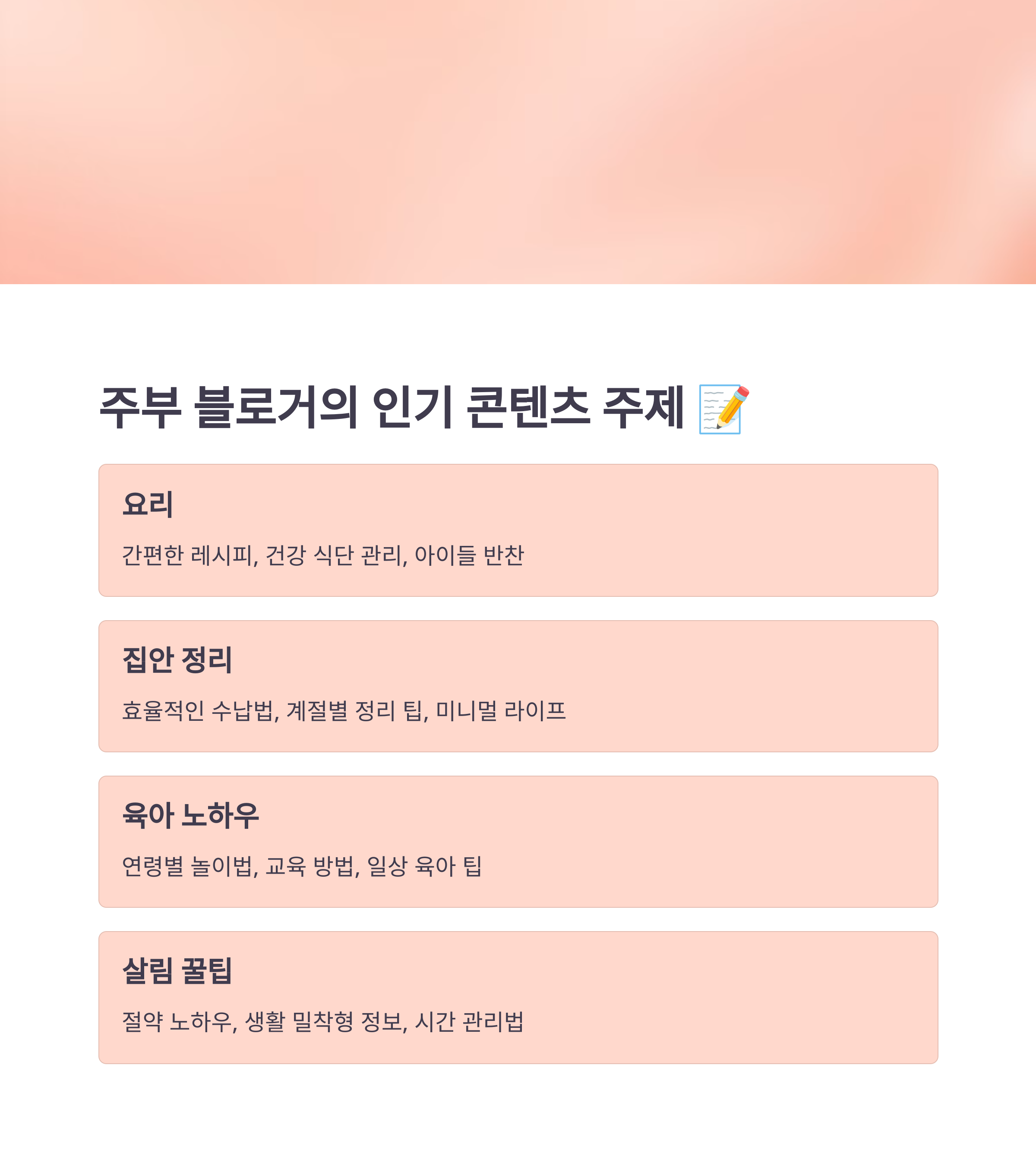 🔍 주부 블로거가 다룰 수 있는 인기 주제