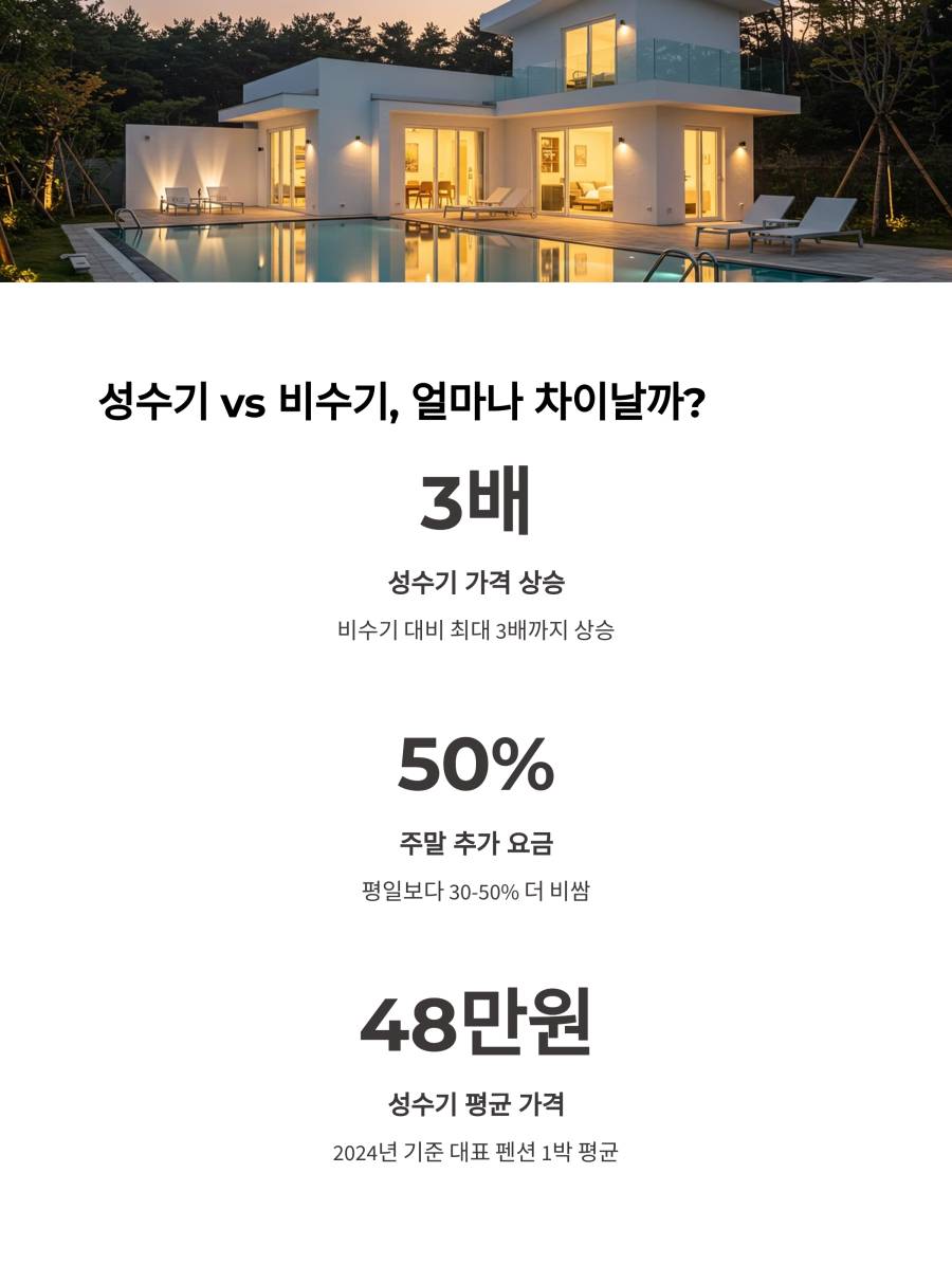 펜션과 풀빌라는 성수기와 비수기의 가격 차이가 2-3배까지 나는 경우가 많아요. 이 점을 잘 활용하면 큰 돈을 절약할 수 있어요!