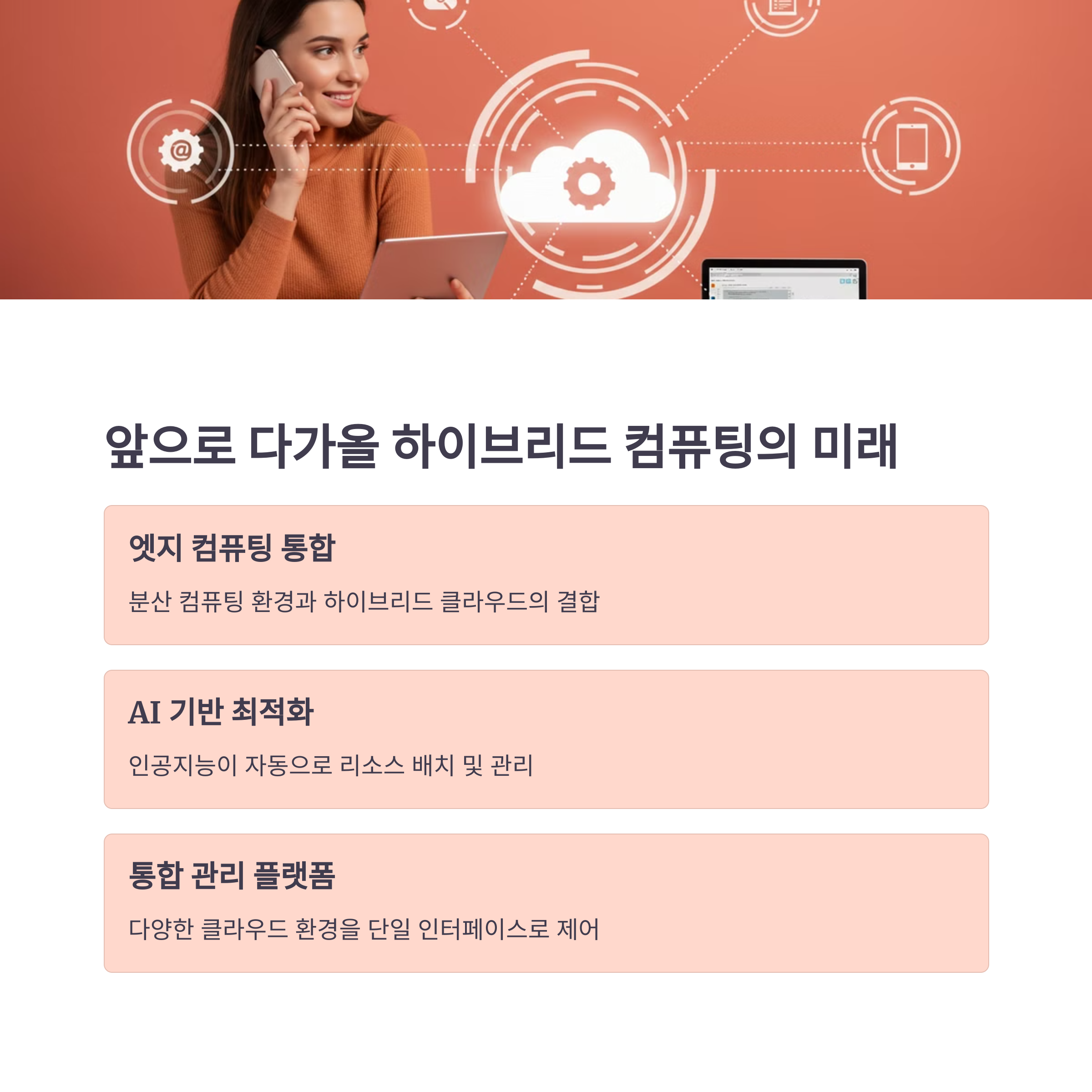 셋째, 멀티 클라우드 관리 플랫폼의 발전이 예상돼요. 여러 클라우드와 온프레미스 환경을 통합적으로 관리할 수 있는 통합 관리 도구들이 더욱 발전하여 하이브리드 환경의 복잡성을 크게 줄여줄 것입니다.
