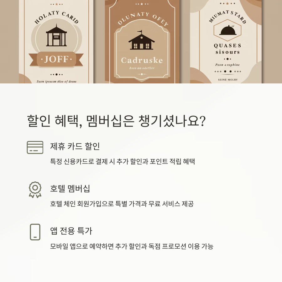 또한 신용카드 제휴 할인도 활용해보세요. 특정 신용카드는 호텔 예약 시 추가 할인이나 캐시백, 마일리지 적립 등의 혜택을 제공하는 경우가 많아요.