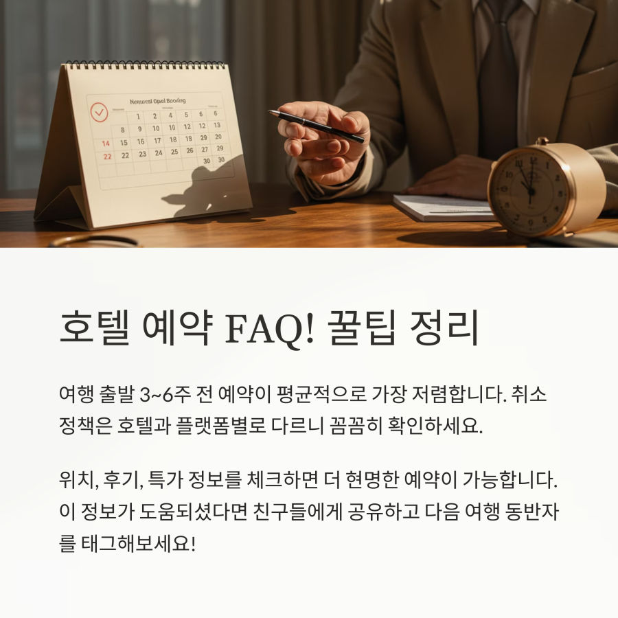 현명한 호텔 예약으로 여행 비용을 절약하고 더 즐거운 여행을 만들어보세요! 여러분의 다음 여행이 더욱 특별하고 경제적이길 바랍니다. 💕
