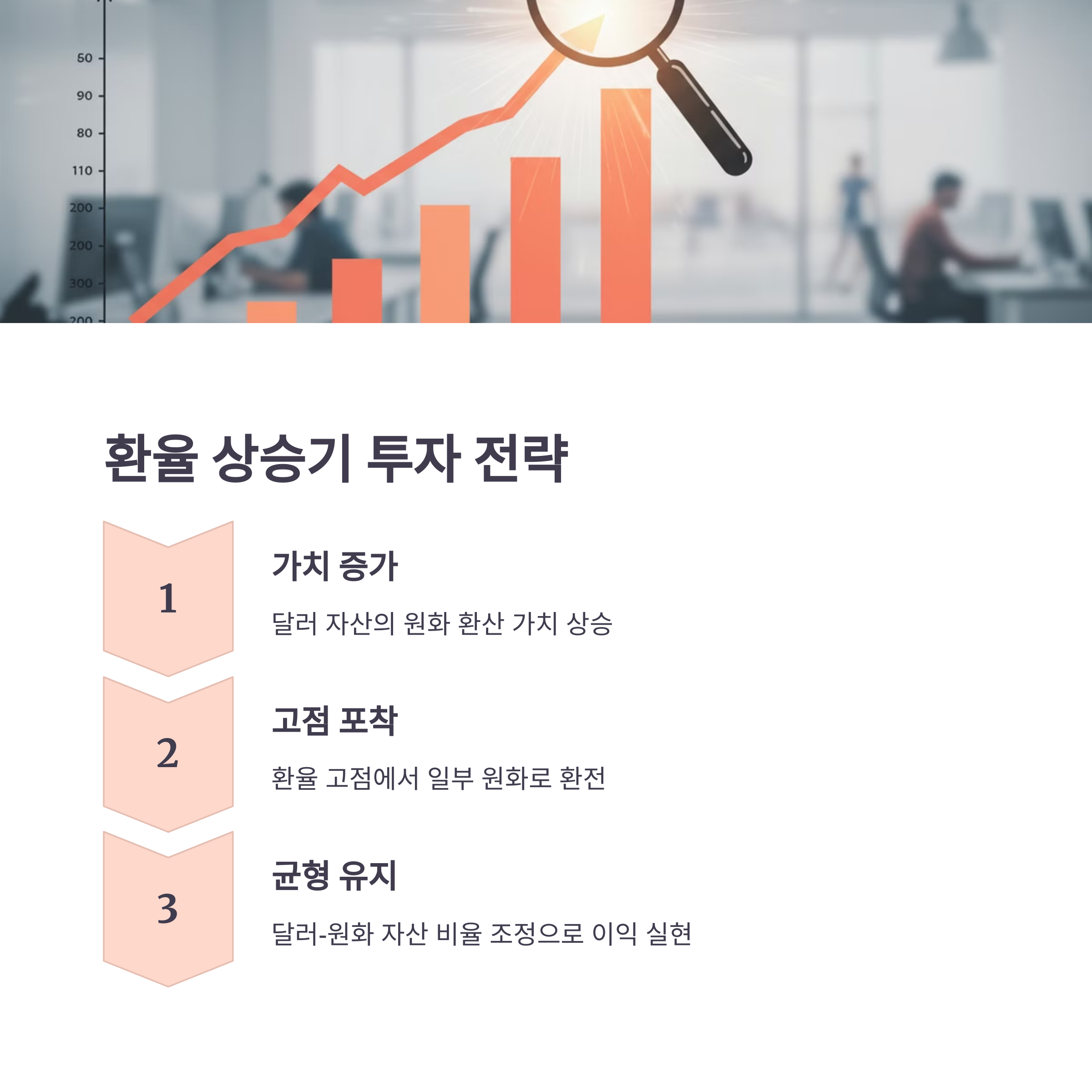 환율이 상승하는 시기에는 달러 자산의 가치가 원화로 환산했을 때 자연스럽게 증가해요.