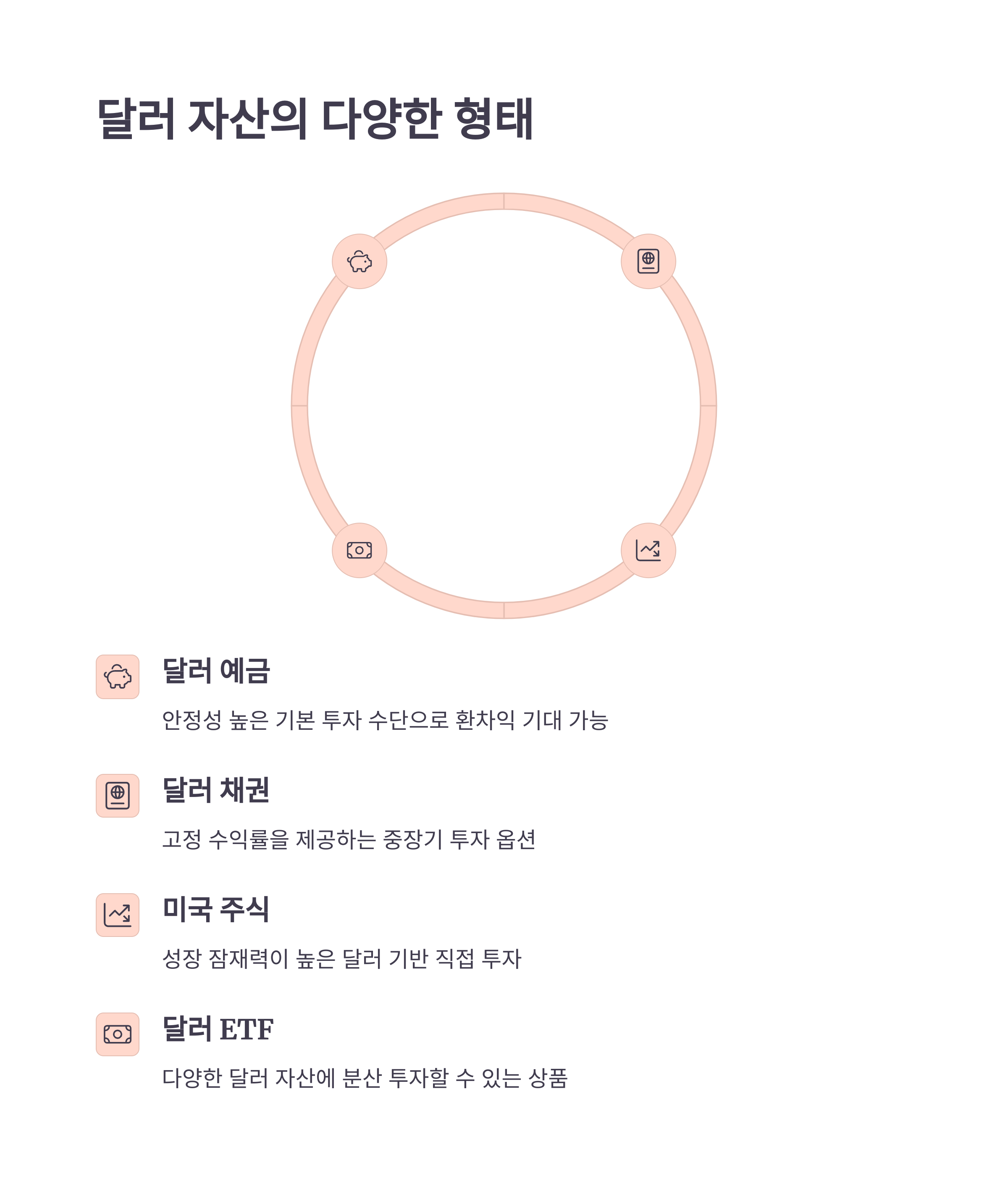 달러 자산은 생각보다 다양한 형태로 보유할 수 있어요.