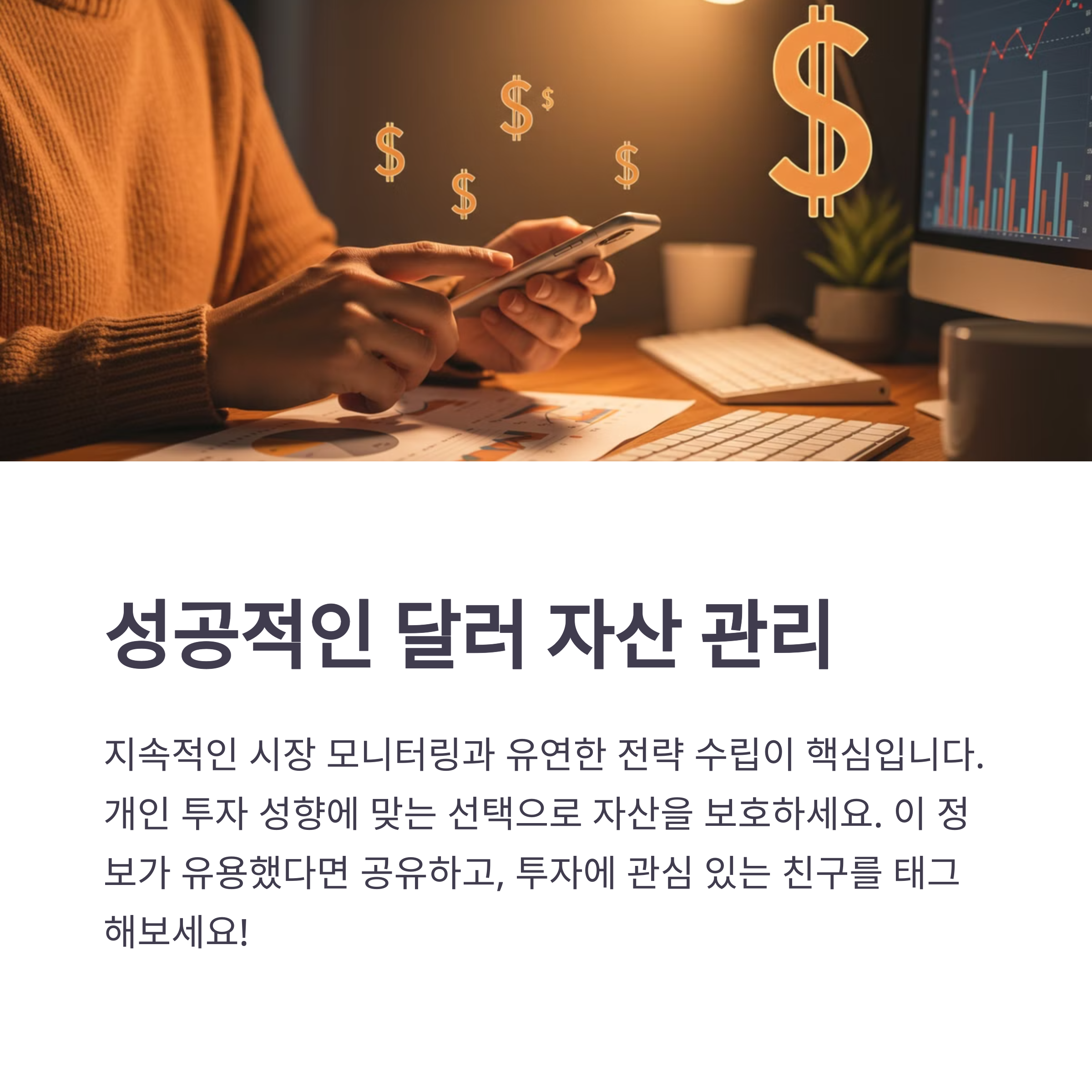 달러 자산만 보유하기보다는 원화 자산, 금, 기타 외화 자산 등 다양한 자산에 분산 투자하는 것이 안전해요.