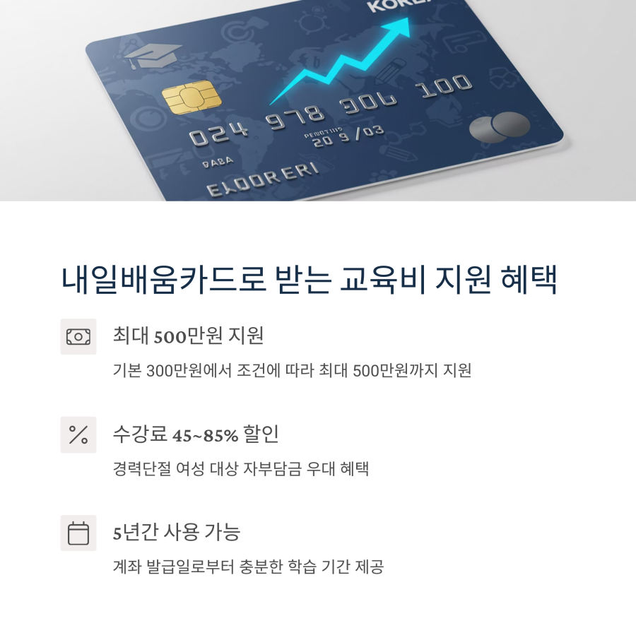 HRD-Net을 100% 활용하기 위해서는 내일배움카드 발급이 필수입니다! 이 카드 하나로 최대 300-500만원까지 교육비를 지원받을 수 있어요. 🎯