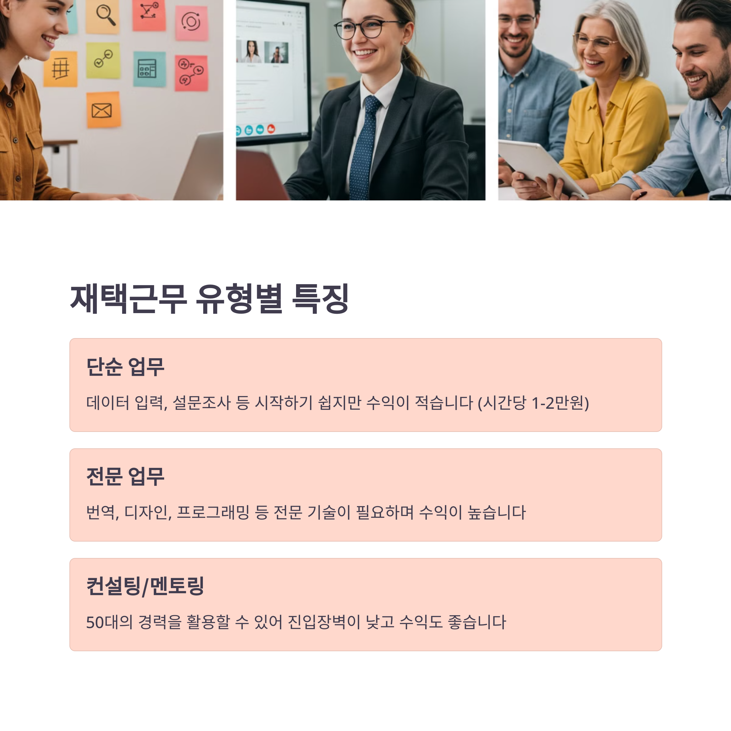 재택근무는 다양한 형태가 있어요. 단순 업무부터 전문적인 일까지 여러 선택지가 있답니다.