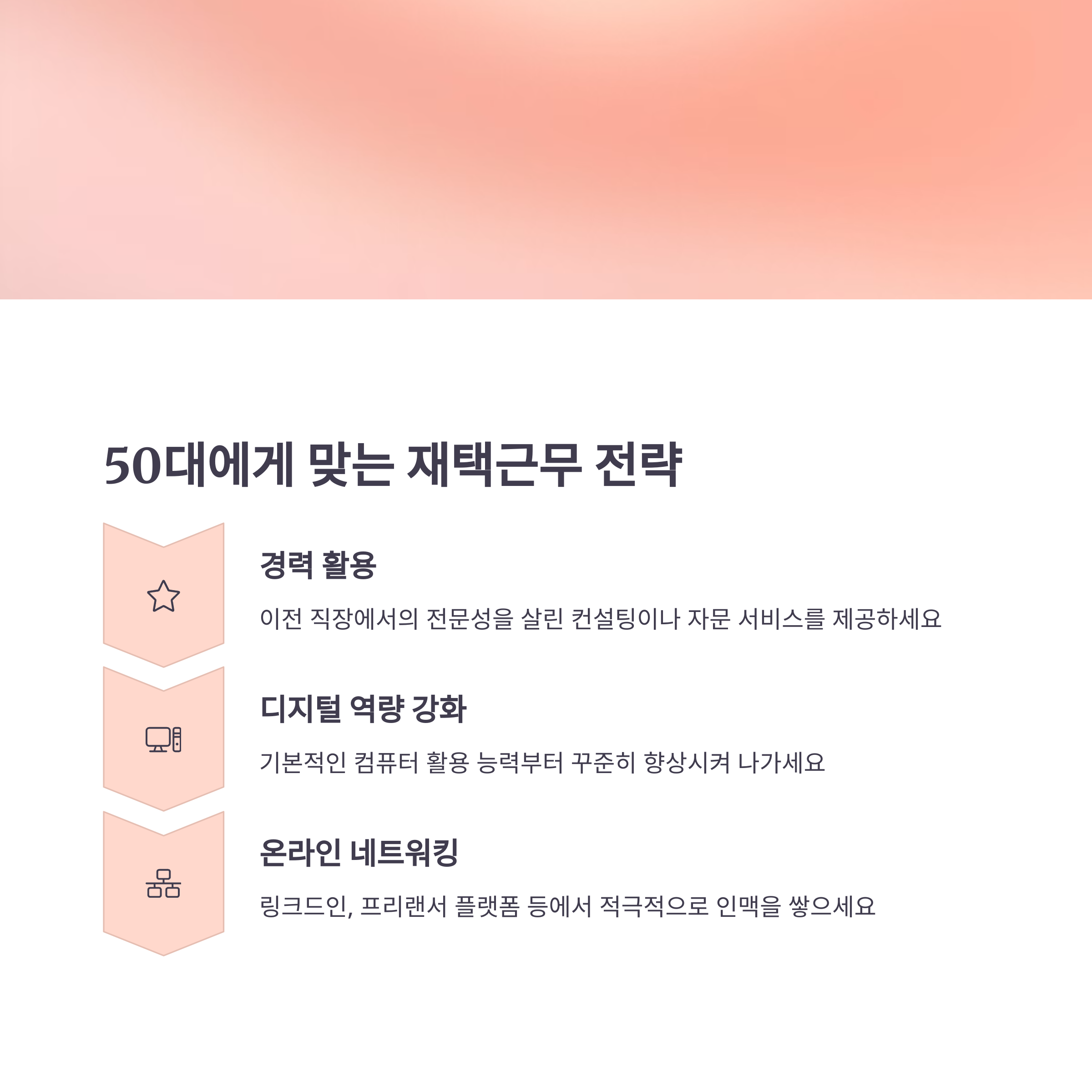 50대에게 가장 적합한 재택근무는 이전 경력을 활용할 수 있는 업무예요. 새로운 기술을 배우는 것도 좋지만, 이미 가진 경험을 활용하면 더 빠르게 적응할 수 있어요.