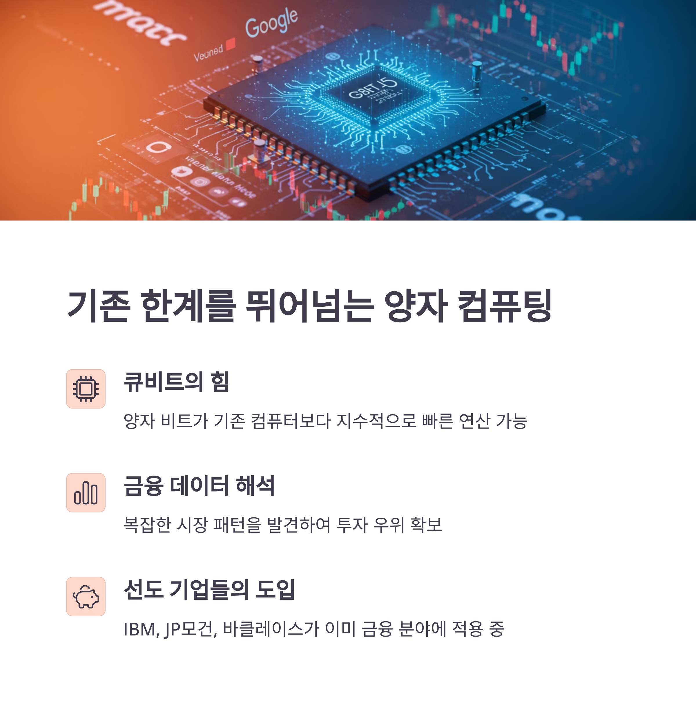 퀀텀 AI는 복잡한 금융 데이터를 분석하여 기존 알고리즘으로는 찾아내기 어려운 패턴을 발견할 수 있습니다. 이는 주식 시장에서 남들보다 한발 앞서 움직일 수 있는 기회를 제공하죠.
